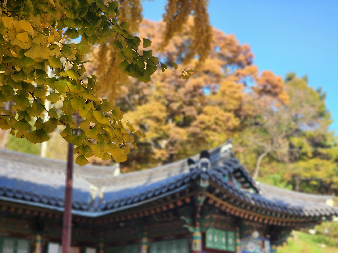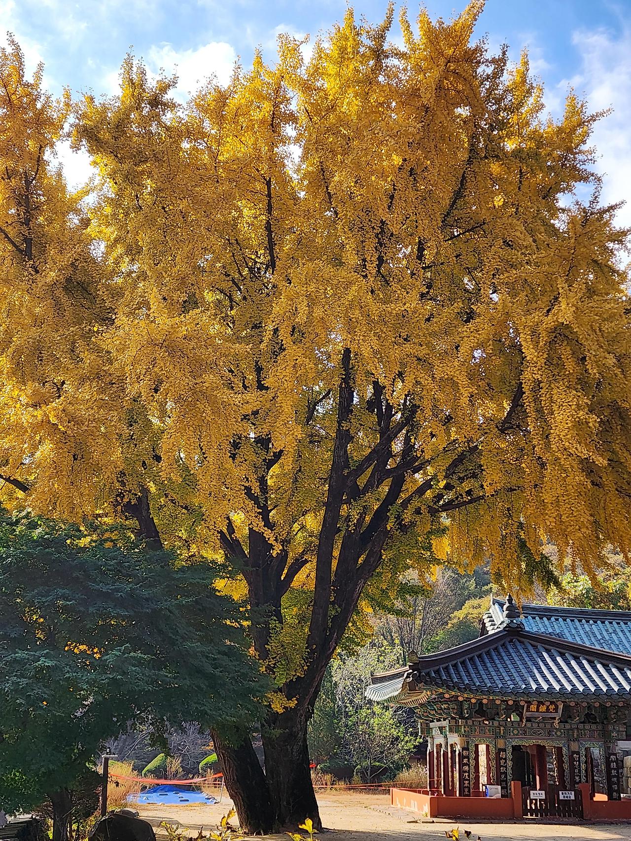 이때 은행나무는 황금빛으로 물들며 절 경내 전체를 빛으로 감싸듯 물들입니다.