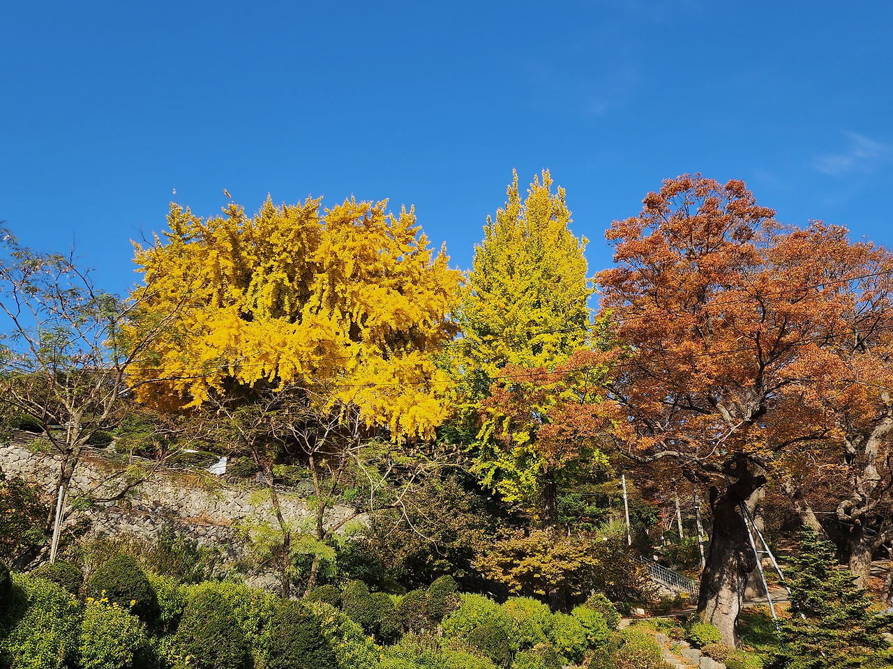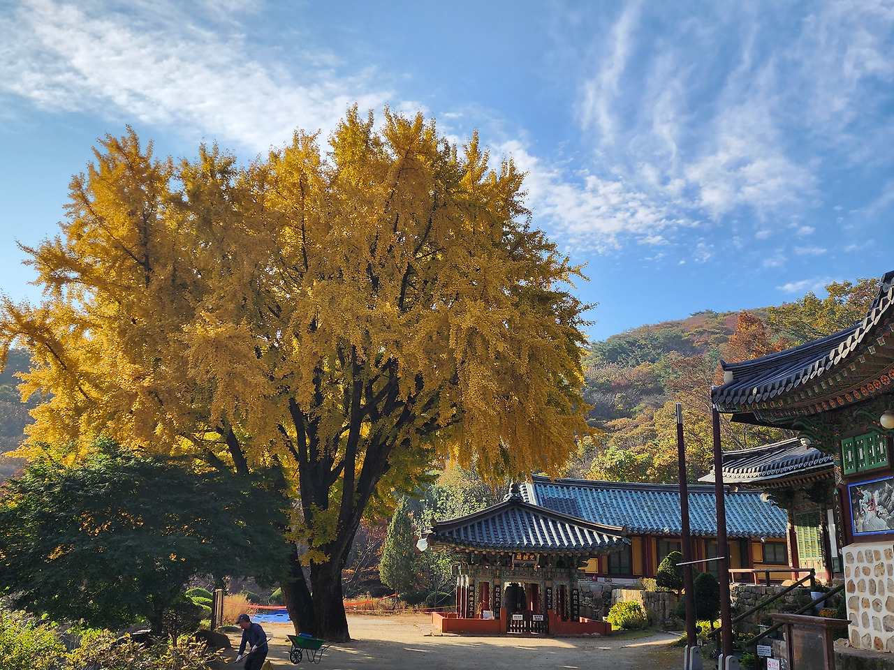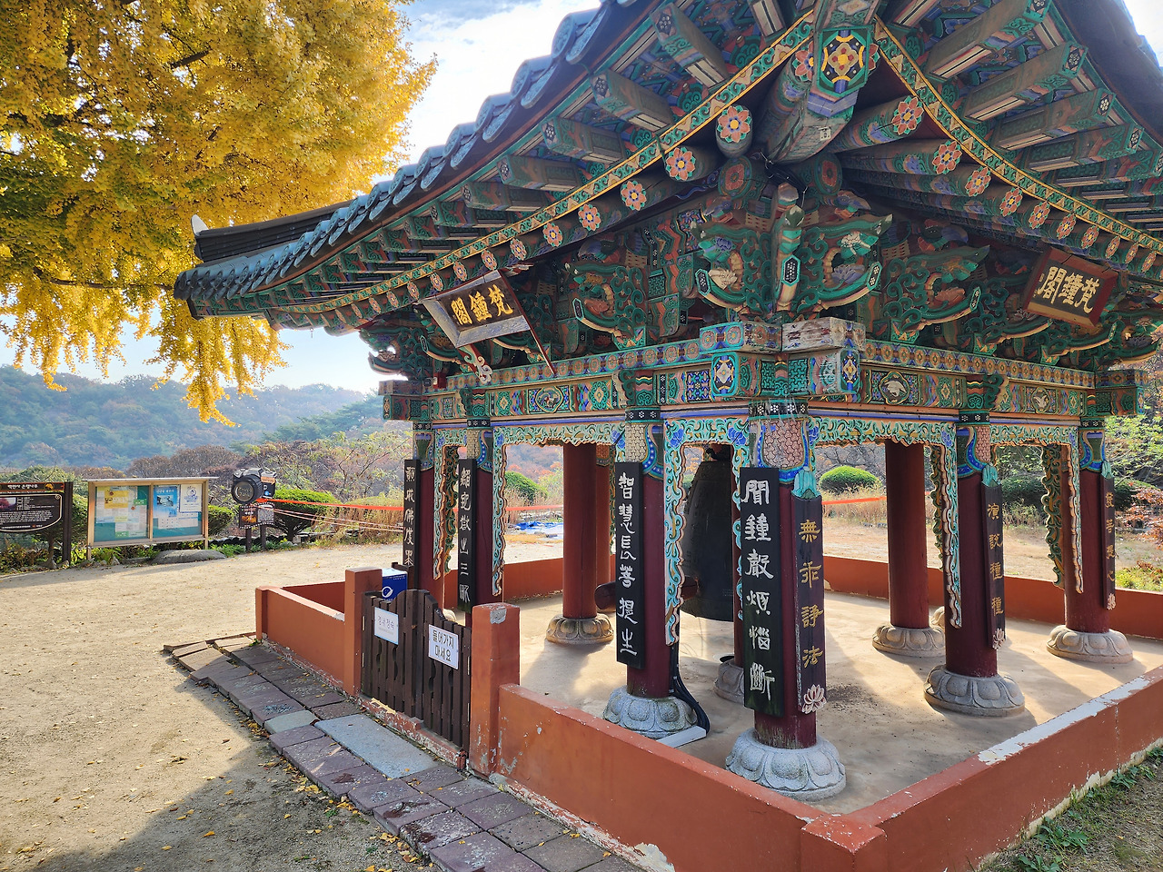 가을철 방문 시, 이곳에서 바라보는 산세와 은행나무의 조합은 마치 한 폭의 수묵화처럼 느껴집니다.