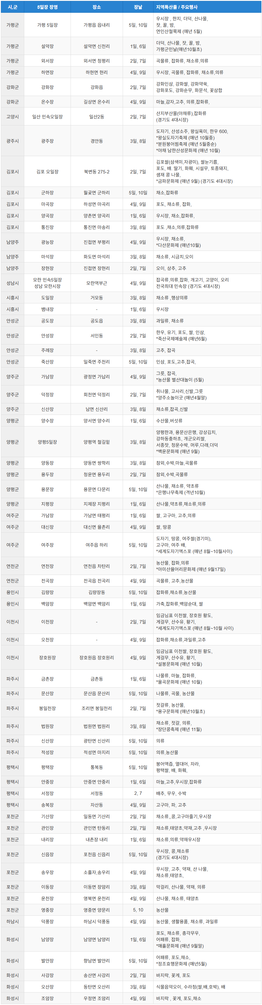 경기도 5일장 일정표 날짜, 성남 모란시장 장날, 김포 평택 여주 양평 오일장 총정리