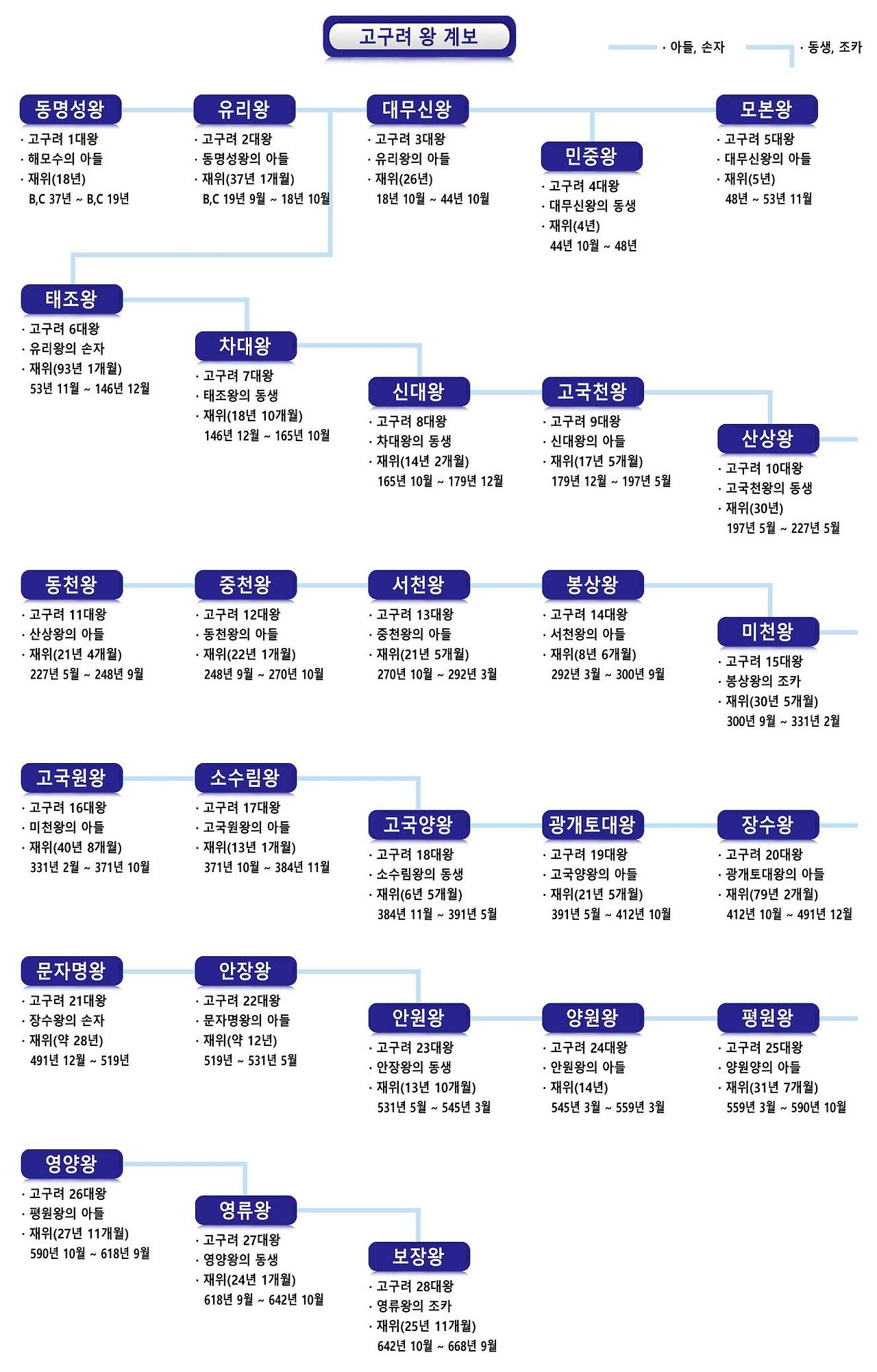 고구려왕의 계보, 왕조, 고구려 왕순서