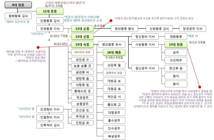 이러한 가계 및 계보 구조는 고려 역사의 전개 과정을 단적으로 보여주며, 단순히 왕위가 이어졌다는 사실뿐 아니라 권력구조의 변모와 함께 이루어졌음을 확인할 수 있습니다.