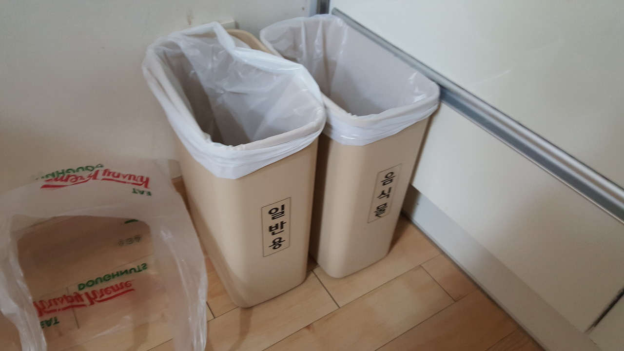 쓰레기 처리는 매우 편리한 편입니다. 주방에는 일반 쓰레기와 음식물 쓰레기통이 분리되어 있고, 현관에는 대형 재활용 쓰레기통이 배치되어 있습니다. 퇴실 시 별도의 정리 부담은 크지 않으며, 장기 숙박 중 쓰레기통이 가득 찼을 경우에만 외부 배출을 하면 됩니다. 수건은 숙박 중 자동 보충되지 않기 때문에 2박 이상 이용하거나 추가 수건이 필요하다면 프런트에 요청해야 하며, 여분을 준비해 가는 것도 하나의 방법입니다.