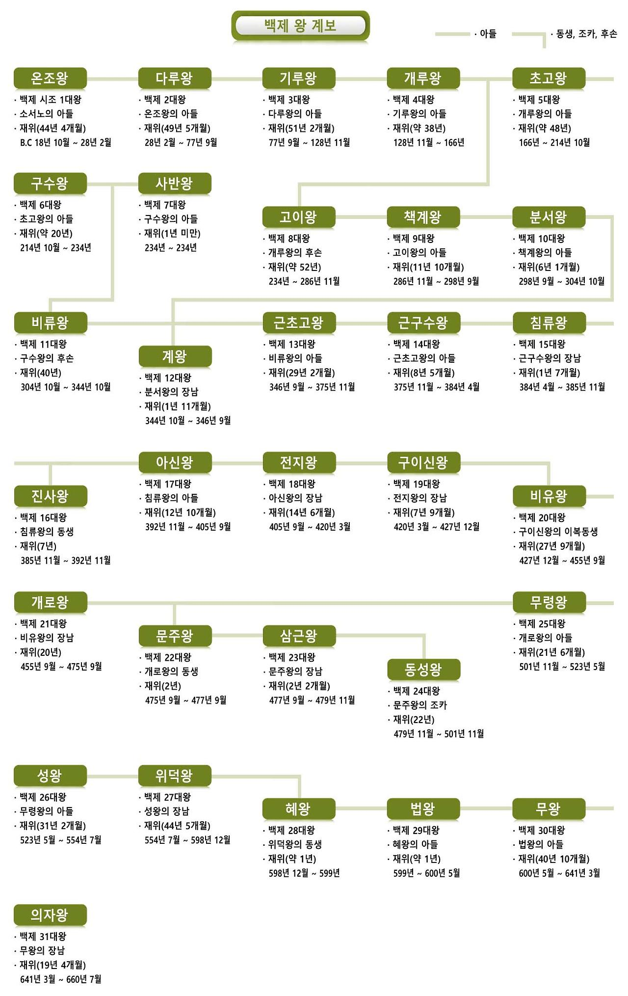백제왕 계보 - 백제 왕 순서 및 주요 특징