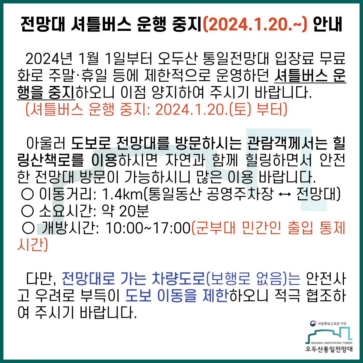 - 셔틀버스 이용 불가: 입장료 무료화로 셔틀 운행 중지