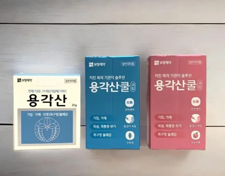 최근에는 기존 제품 외에도 용각산 쿨과 같은 변형 제품이 출시되어 있습니다. 용각산 쿨은 멘톨 성분이 추가되어 시원한 청량감을 주는 것이 특징이며, 목이 답답하거나 텁텁한 느낌이 강할 때 선호됩니다. 반면 일반 용각산은 자극이 비교적 적어 민감한 목 상태나 장시간 사용 시 부담이 적은 편입니다. 개인의 증상 양상과 선호도에 따라 선택하는 것이 바람직합니다.