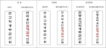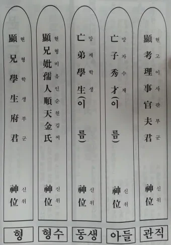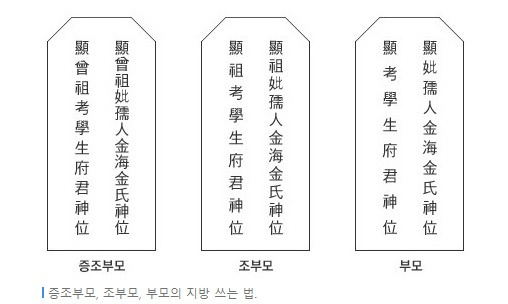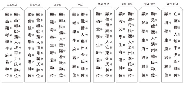 제사 지방쓰는법 - 동생, 아버지, 어머니, 숙부 , 남편, 누나
