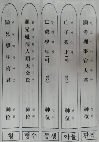 - 남동생: 顯弟學生府君神位
