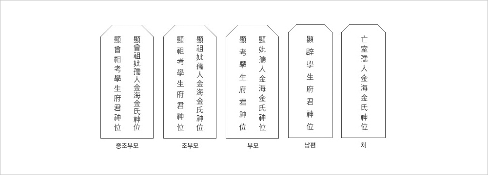 ※ 남편이 아내의 제사를 모시는 경우 ‘顯妣’가 아닌 ‘顯室’을 써야 합니다.