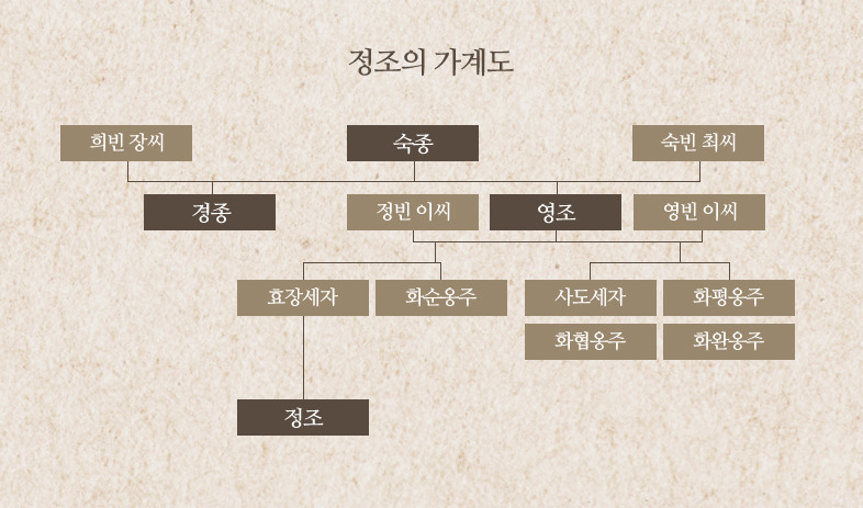 • 부: 숙종 (형을 독살하고 왕이 됐다는 음모론에 괴로워했던 동생)