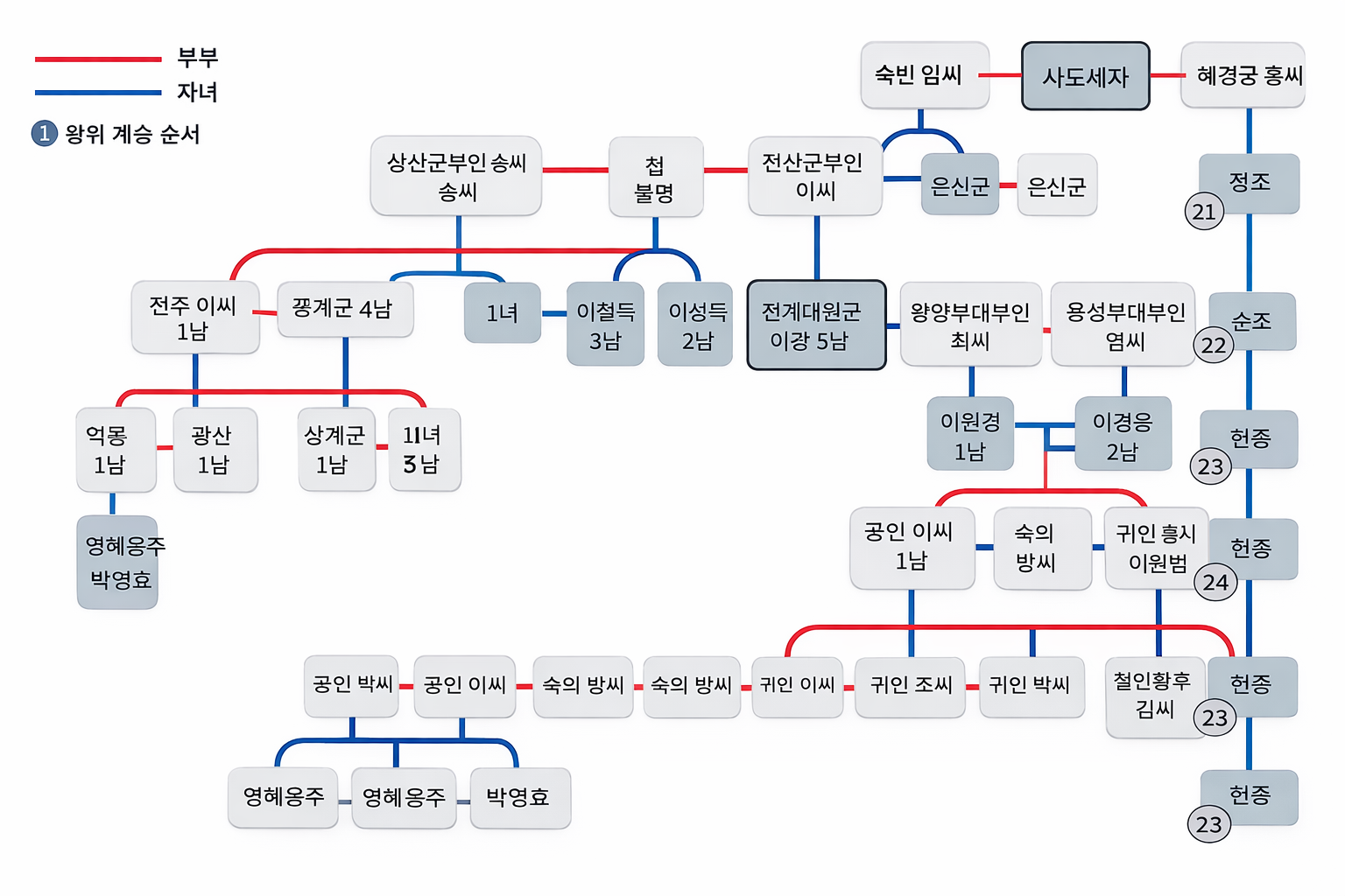 조선 철종 가계도를 중심으로 조선 후기 왕실 계보를 정리하면 다음과 같은 흐름으로 이해할 수 있습니다.
