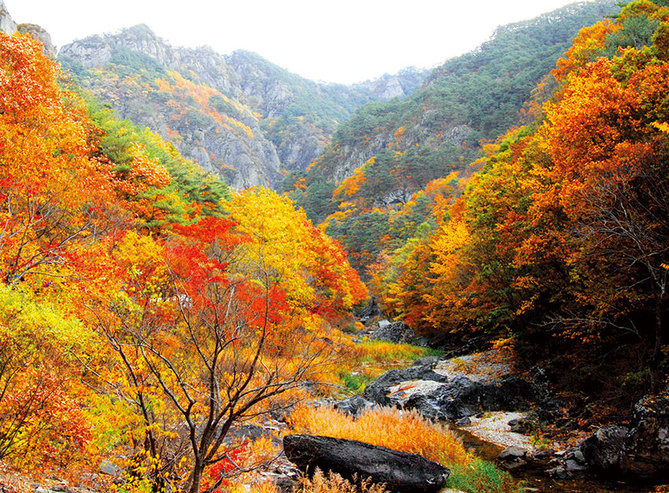 특징: 사람의 왕래가 비교적 적어 고요한 산행이 가능하며, 단풍이 천천히 떨어져 계곡 위를 덮는 ‘낙엽길’이 특히 인상적입니다. 계곡 물소리와 단풍 낙엽이 어우러지는 길로, 혼자 또는 커플 여행자에게 어울립니다.