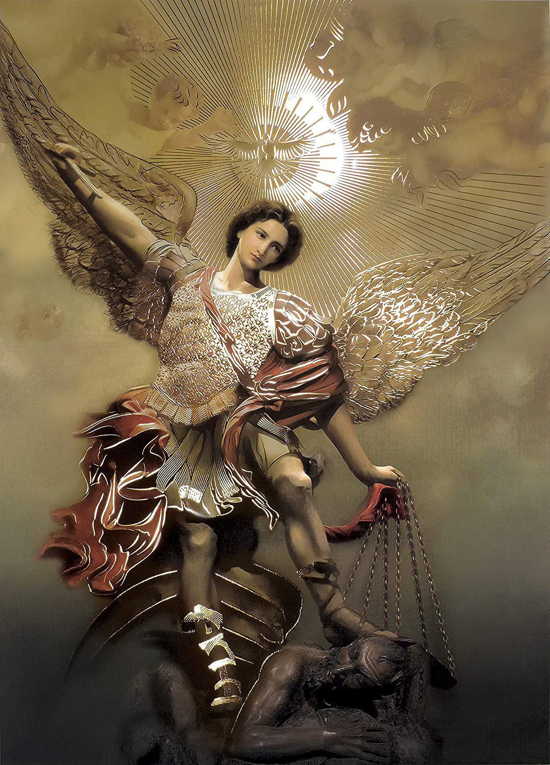 “성 미카엘 대천사여, 싸움에서 우리를 보호하소서. 악마의 간계와 사악함으로부터 우리를 지켜주소서. 하느님께서 그를 벌하시도록 간청하오며, 천상 군대의 영도자이신 미카엘이여, 하느님의 권능으로 사탄과 악령들을 지옥으로 쫓아내소서. 아멘.”