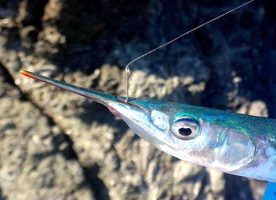 학꽁치는 흡입력이 약해 미끼를 건드리는 수준의 입질이 많습니다.