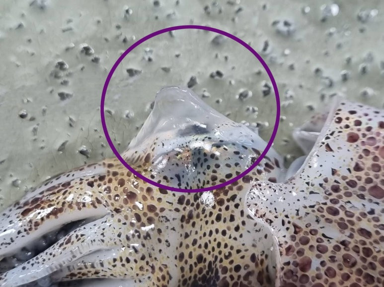 • 오징어: 눈에 막이 없음, 다리가 상대적으로 김, 지느러미가 몸통의 약 30%