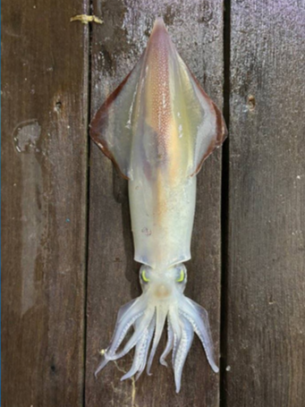 • 무늬오징어(흰꼴뚜기): 꼴뚜기과, 무늬와 색감이 뚜렷함