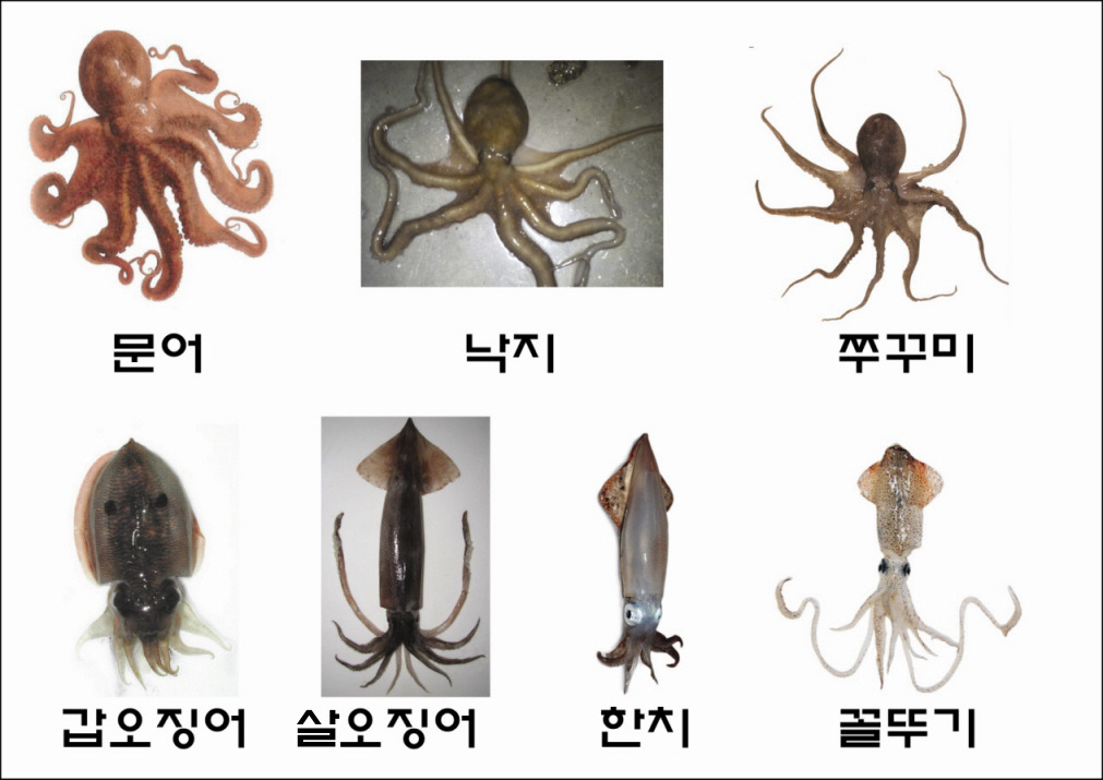 • 꼴뚜기: 눈에 막이 있음, 체형이 비교적 단단함