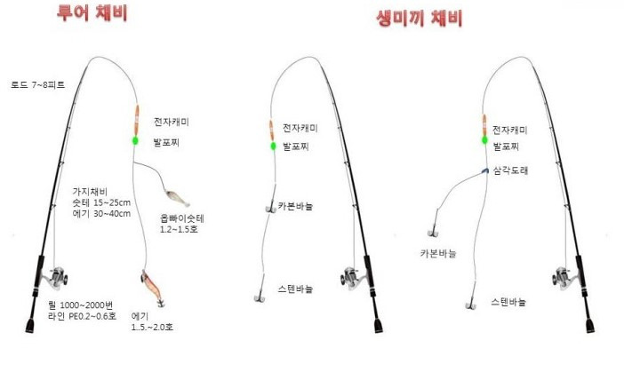 • 어획방법: 야간 집어등 사용, 에기·채비 낚시