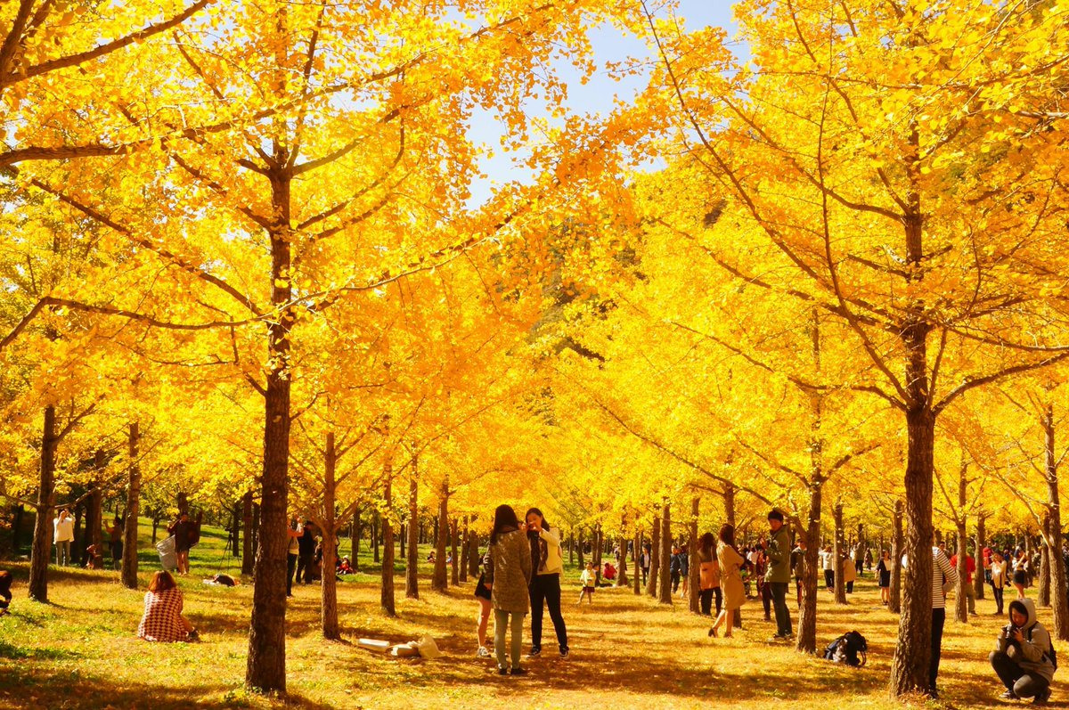 - 중앙 광장: 중앙부로 들어서면 사방이 노란 잎으로 둘러싸여 황금빛 돔 아래에 서 있는 듯한 느낌을 줍니다.